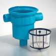 A total retention rainwater filter with integrated dirt collecting basket at mesh width of 1 mm. Easily remove the filter basket with the removal handle.